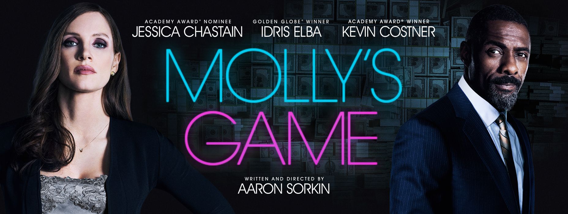 Tositapahtumiin perustuva Molly’s Game kertoo Molly Bloomin uskomattoman elämäntarinan: noususta maailman ylellisimpien pokeripelien järjestäjäksi, ja lopulta tuhosta rahanpesukohun runtelemana. Molly Bloom (Jessica Chastain) on olympiatason syöksylaskija, jonka ura katkeaa loukkaantumiseen. Etsiessään elämälleen uutta suuntaa hän päätyy mukaan pokerikuvioihin: järjestämään yksityisiä peli-iltoja, joissa julkkikset lyövät korttia isoista rahoista suljettujen ovien takana. Sinnikkyydellä ja nokkeluudella Molly onnistuu rakentamaan peleistään kokonaisen bisnesimperiumin: Hollywood-tähdet, huippu-urheilijat ja yritysjohtajat voittavat ja häviävät hänen pelipöydissään suunnattomia summia. Bloom ehti pyörittää kovien panosten pelejä vuosikymmenen ajan ennen kuin FBI pääsee hänen kannoilleen suuren kohun saattelemana. Mollyn roolissa nähdään Jessica Chastain (Yksin Marsissa, Zero Dark Thirty) ja hänen ainoana liittolaisenaan, puolustusasianajaja Charlie Jaffeyn roolissa Idris Elba (Luther).